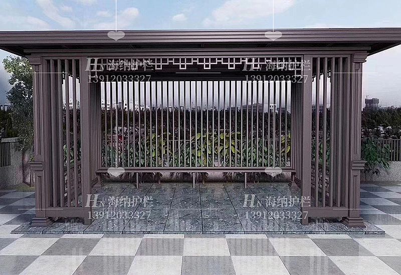 涼亭木紋柵欄